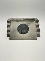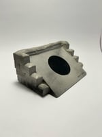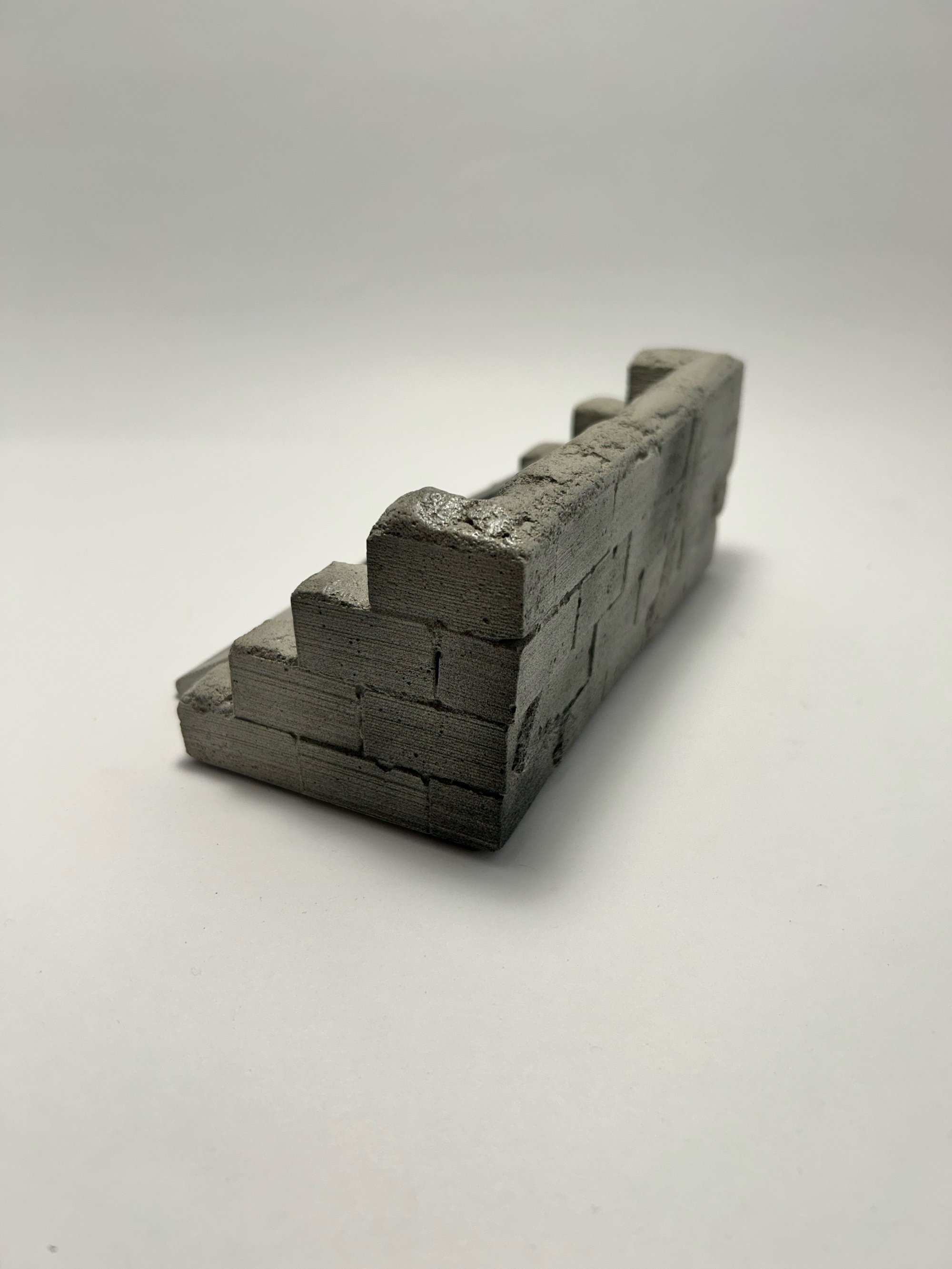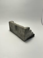 Concrete bank with manhole inlay and cinder block wall surround