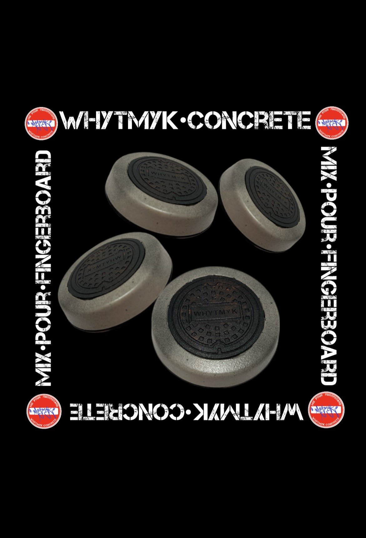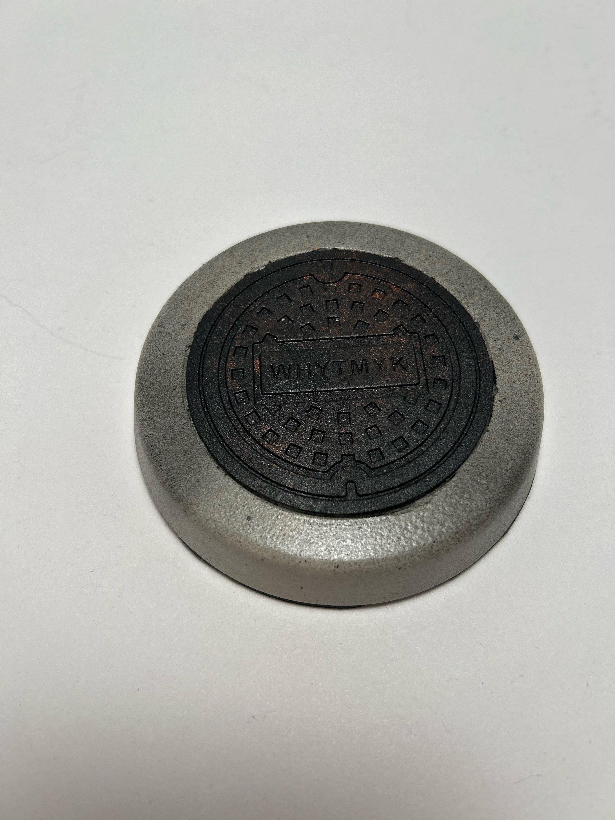 [Set of 4] concrete sewer coasters with embedded WhytMyk sewer top. Wife approves foam bottom for no scratches.