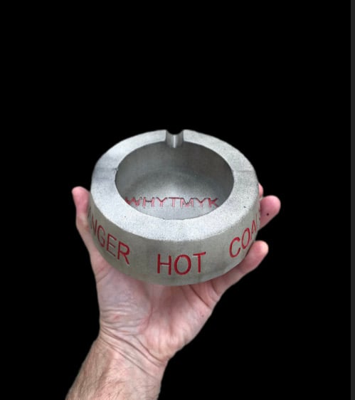 5 inch round (concrete) ashtray that is a mini version of the fire pits at Bosa Chica state beach in Huntington Beach California.
