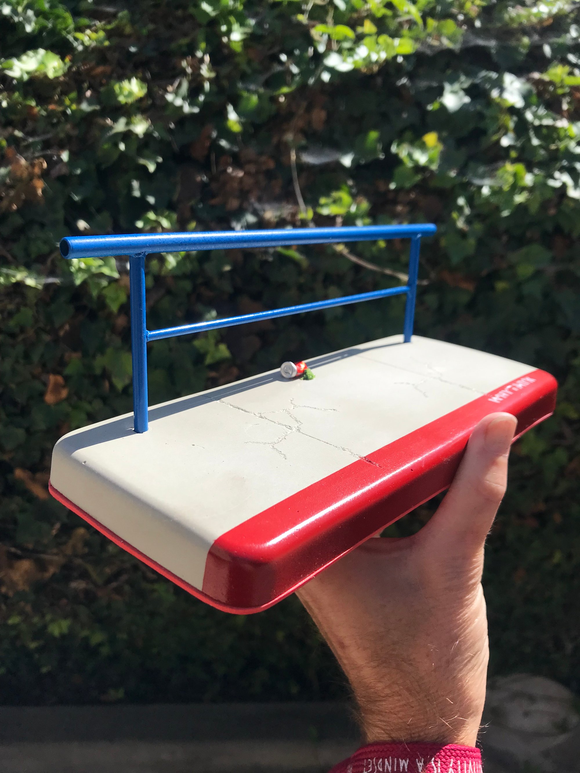 9 inch sidewalk w/ approx 2 1/2 inch hand rail.