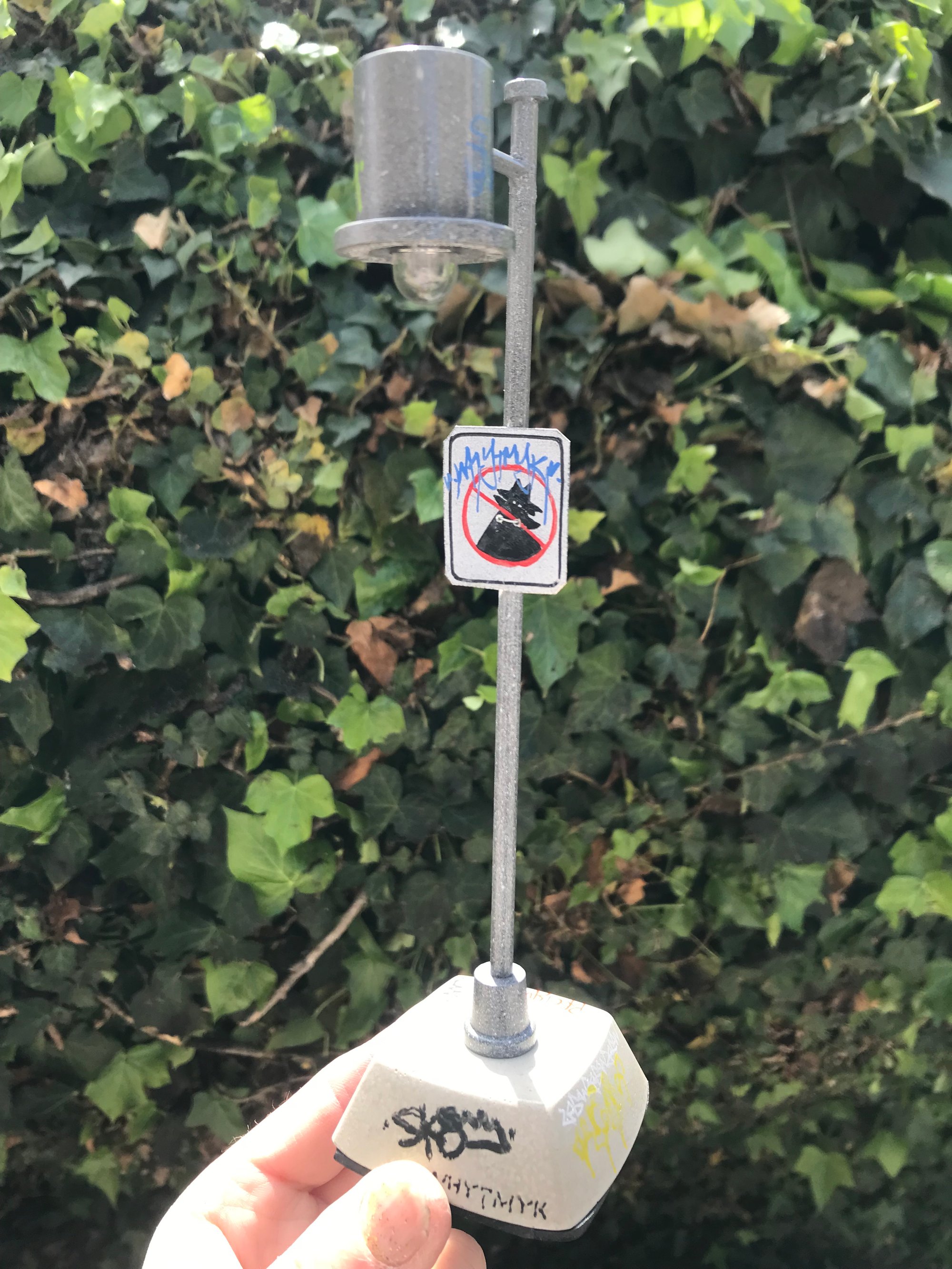 Working street light is a single light or parking lot light is double lights. Both have removable lights to replace batteries as needed. Signs will vary